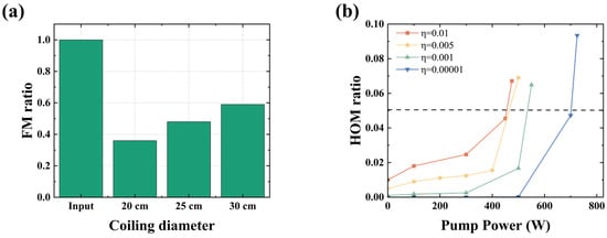 - Li, J.; Wang, J.; Jing, F. Improvement of Coiling Mode to Suppress Higher-Order-Modes by Considering Mode Coupling for Large-Mode-Area Fiber Laser. J. Electromagnet. Wave. 2010, 24, 1113–1124. [Google Scholar] [CrossRef]