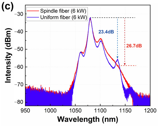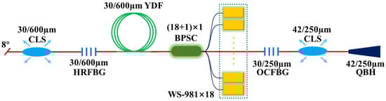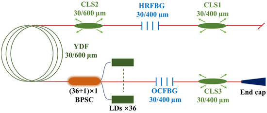- Lin, X.; Ye, Y.; Zhang, Z.; Wang, X.; Xing, Y.; Chen, G.; Peng, J.; Li, H.; Dai, N.; Li, J. 2.7 kW co-pumped fiber amplifier based on constant-cladding tapered-core fiber. Opt. Fiber Technol. 2022, 68, 102773. [Google Scholar] [CrossRef]