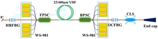 - Ye, Y.; Yang, B.; Shi, C.; Xi, X.; Zhang, H.; Wang, X.; Zhou, P.; Xu, X. Towards power improvement of all-fiber laser oscillators with 30 μm-core Yb-doped fibers by suppressing transverse mode instability. Laser Phys. Lett. 2020, 17, 85106. [Google Scholar] [CrossRef]