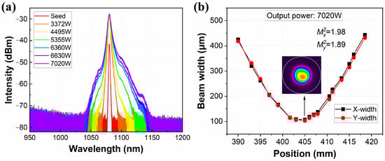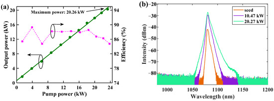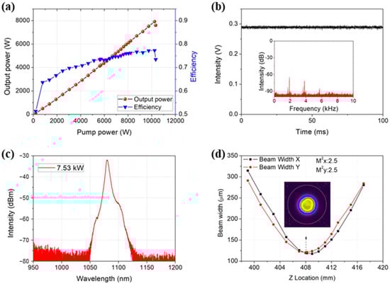 - Ren, S.; Ma, P.; Li, W.; Wang, G.; Chen, Y.; Song, J.; Liu, W.; Zhou, P. 3.96 kW All-Fiberized Linearly Polarized and Narrow Linewidth Fiber Laser with Near-Diffraction-Limited Beam Quality. Nanomaterials 2022, 12, 2541. [Google Scholar] [CrossRef]