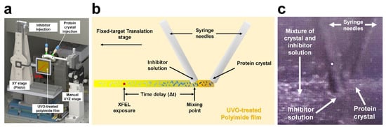 Furthermore, the reaction process of the target molecule can be observed at various time delays using either an optical pump-probe experiment or a mix-and-inject technique that mixes a substrate or inhibitor with crystal slurries [,,,]. The time-resolved SFX accompanied by the previous techniques is advantageous for determining the molecular mechanisms of biological reactions [,]. Accordingly, the SFX technique provides experimentally reliable structural information when compared with other structural biology techniques [].