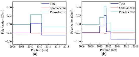 Polarization electric fields of (a) LED A and (b) LED B at 60 A/cm2.
