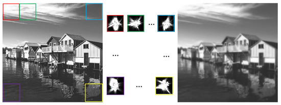 We noticed that within the range of isoplanatic angle [26], the wavefront distortion caused by turbulence on the atmospheric path is basically consistent. In other words, image blocks within the range of isoplanatic angle can be convoluted using the same PSF. However, the field of view angle of the actual observation system is much larger than the isoplanatic angle. Therefore, different blocks of an image have different corresponding PSFs, as shown in Figure 5.