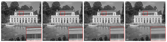 Simulation results under different conditions of : (a) clean image; (b) ; (c) ; (d) .