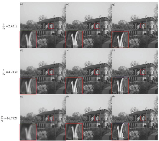 Through the above methods, we can simulate and generate a large-scale dataset. The specific parameters of the simulation are given in Table 1. In this paper, the ratio D/ of observation aperture D to atmospheric coherence length [27] is used to quantify the effect of turbulence on imaging. Figure 6 shows the simulation results under different conditions.
