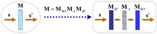 Let us consider the transformation of polarized light by the action of a linear medium (under fixed interaction conditions). It can always be formulated as where s and are the Stokes vectors that represent the states of polarization of the incident and emerging light beams, respectively, while M is the Mueller matrix associated with this kind of interaction and can always be expressed as [8,59,60].