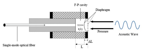 - Xiang, Z.; Dai, W.; Rao, W.; Cai, X.; Fu, H. A Gold Diaphragm-Based Fabry-Perot Interferometer with a Fiber-Optic Collimator for Acoustic Sensing. IEEE Sens. J. 2021, 21, 17882–17888. [Google Scholar] [CrossRef]