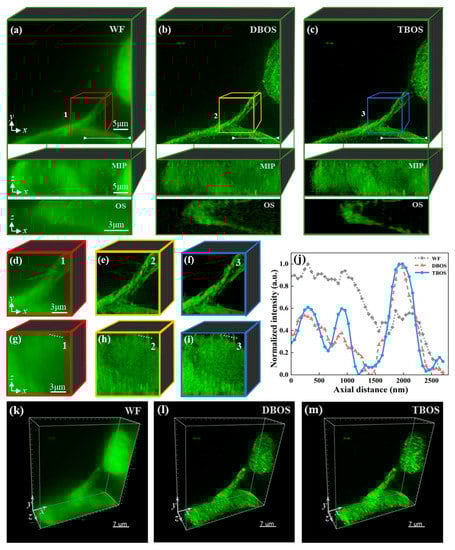 - Planchon, T.A.; Gao, L.; Milkie, D.E.; Davidson, M.W.; Galbraith, J.A.; Galbraith, C.G.; Betzig, E. Rapid three-dimensional isotropic imaging of living cells using Bessel beam plane illumination. Nat. Methods 2011, 8, 417–423. [Google Scholar] [CrossRef] [PubMed]