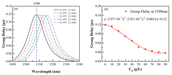 (a) Partial enlarged view of GD1. (b) Response of group delay at 1508 nm to plasma concentration.