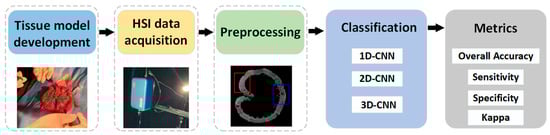 Framework for processing hyperspectral data of small intestine tissue.