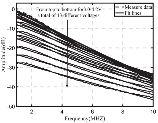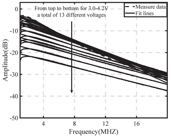During measuring processing, the VNA ZNB20 uniformly samples 201 points of the selected frequency range under a single bias voltage. In order to facilitate modelling and analysis of bias voltage and amplitude–frequency response, in the experiment, we use to represent the frequency response in dB, f to represent the frequency in MHz, and to represent the bias voltage in V.