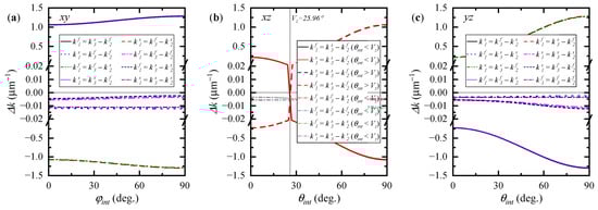 The calculated wavevector mismatch for all three principal planes of BIBO is shown in Figure 6. Here, we choose λ1 = 1000 µm as a signal wavelength in the THz range and λ3 = 0.8 µm as a pump wavelength, corresponding to a Ti:sapphire femtosecond laser.