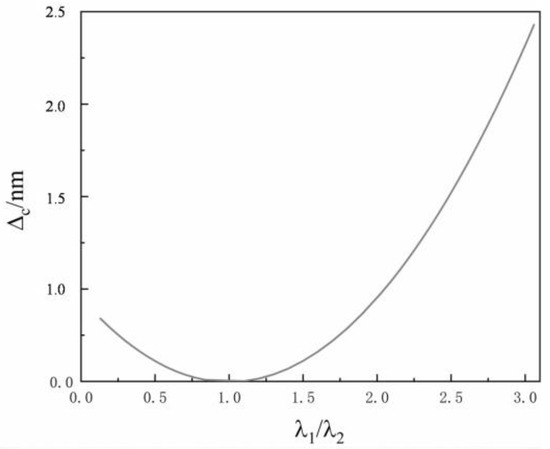 where and . According to Equation (11), the following relationship can be obtained by calculating the offset gradient of the distortion of two Gaussian beams with different wavelengths on the measuring surface of the sensor: