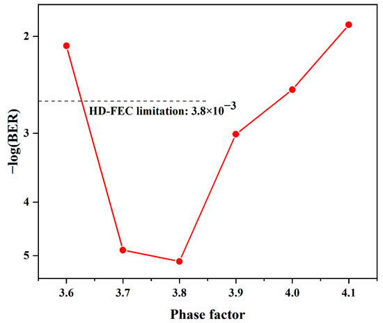 BER under different phase factor conditions with a launch power of −15.803 dBm.