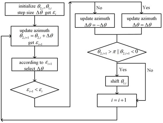 Considering the simplification of the control loop in the SHC system, the DSP optimization equation in this control system is simpler. On this basis, the GLD algorithm may be better suited to control injected SOP of the PC. The flow of the variable-step GLD algorithm in MZI-structure PC is shown in Figure 6. represents the input feedback signal of the DSP module, while and represent the azimuth of the first and second phases of the phase shifter, respectively. The updated formula of MZI is as Equation (13). The method of shifting is shown in Equation (14). The initial value of n is set to 1. When or , .