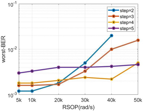 The worst−BER versus RSOP with different steps.