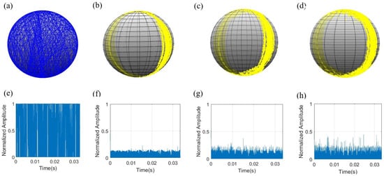 Figure 13 displays the schematic diagram of the Poincaré sphere and feedback signal normalized amplitude after the scrambled and controlled LO of the variable-step GLD algorithm under the HWP structure at different RSOP. As the RSOP increases, the azimuth of input LO near the pole changes faster than other areas of the Poincaré sphere, resulting in the HWP or phase update rate fail to keep up with the azimuth angle change, and the feedback signal is more likely to fall into an uncontrolled area. The situation that the PC output LO is away from will exacerbate on the pole of the Poincaré sphere.