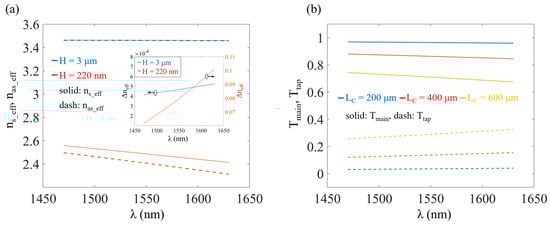 S is set as 4%. The effective coupling length of the proposed DC is ensured to stay below 820 μm, as determined by the limitations of the sine function’s argument in Equation (3). To achieve this, we initially set