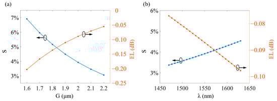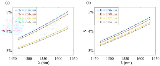 S resulting from these waveguide profiles remained within ±1% over a wide wavelength range from 1470 nm to 1630 nm. A notable point is that the device’s wavelength sensitivity increases with decreasing