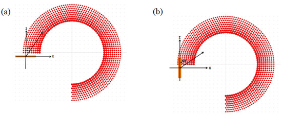 The engineering of the refractive index profile is a useful method for controlling the electromagnetic field. Gradient photonic crystals are able to control the direction of light propagation and bend light waves. Thus, graded photonic crystals can also be theoretically fabricated as large curved waveguides, and their model is shown in Figure 3.