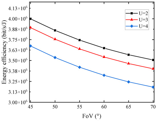 EE versus FoV with different number of users.