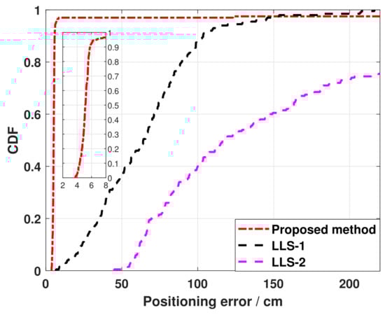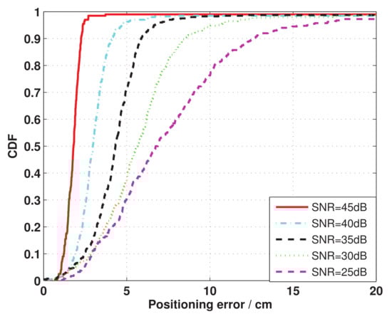- Evaluation of the proposed positioning scheme in an actual indoor positioning scene by extensive computer simulation comparisons with the CRLB for different SNRs.
