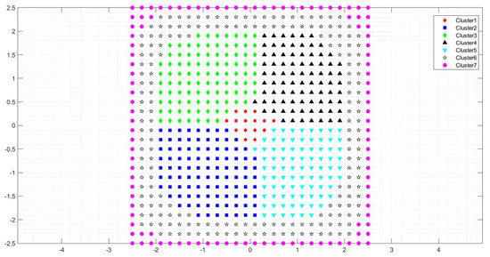The positioning effect is different for different areas. Therefore, the indoor positioning technology based on VLC must take into account the reflected signal and all receiving points are clustered via fusion before positioning. Fusion clustering uses two algorithms to complement each other’s advantages to improve its accuracy. The specific fusion clustering effect is shown in Figure 9.