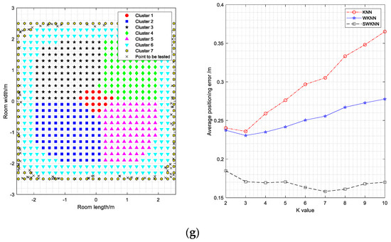Clustering effect diagram and positioning error of each region: (a) Cluster 1; (b) cluster 2; (c) cluster 3; (d) cluster 4; (e) cluster 5; (f) cluster 6; (g) cluster 7.