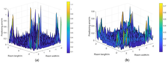 Location error distribution diagram. (a) Traditional fingerprint method; (b) proposed algorithm.