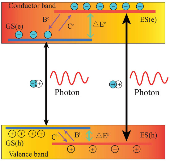 Schematic diagram of asymmetric electron-hole carrier dynamics and energy level structure of QDLs. ES(e): electrons in excited state; ES(h): holes in excited state; GS(e): electrons in ground state; GS(h): holes in ground state.