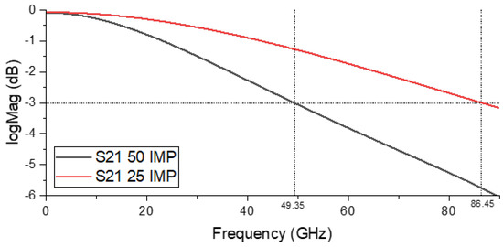Experimental measurements were made on over 60 devices. By isolating the parasitic capacitance measured before, simulated s were generated and values were extracted for devices of varying length. The average value for each material is presented above for impedances of 25 and 50 .