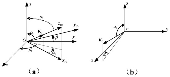 (a) The intermediate system established parallel to first laser beam coordinate system . (b) Illuminated angle and polarized angle of second laser beam.