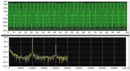 The phase-generated carrier measurement results when the modulated frequency is 10 MHz in the time and frequency domain.