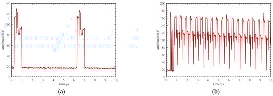 The output waveform of PMDI interferometric pulses when repetition frequency is (a) 160 kHz and (b) 1.4 MHz with 200 ns pulse width.