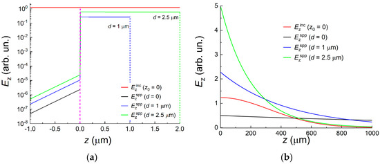 d ≈ 1 μm, and then gradually decreased. For comparison, this figure shows the theoretical dependences