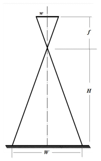 Based on the principles of geometric optics, the analytical model for the ground swath width of the imaging system is shown in Figure 4.