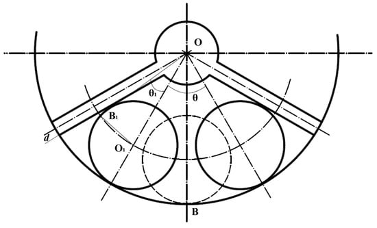where θ1 is the angular aperture of the aperture with respect to the rotational center and d is the half-width of the filter wheel bracket. θ1 can be determined from the following equation: