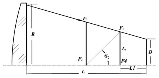 The Y dimension of the reflective prism determines the relative positions of the two edges F1F4 and F2F3, and their different positions will result in different widths in the X direction. According to geometric relationships, the lengths of the reflective prism in the X direction are: