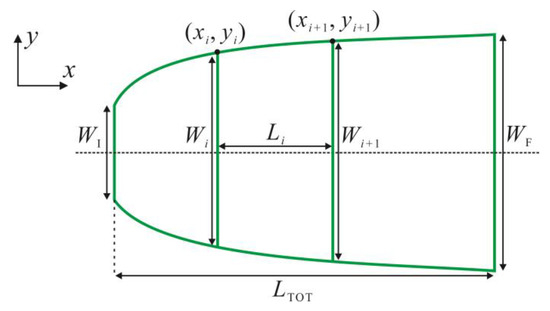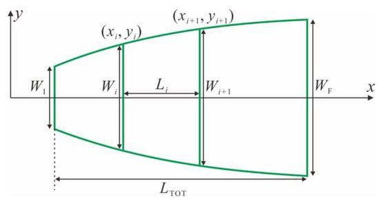 Equation (10) is used to calculate the length for each section in adiabatic taper waveguides. This equation is free from axial limitations and only depends on the structural parameters to be designed. For each section, the input and output widths Wi and Wi + 1 are connected linearly.