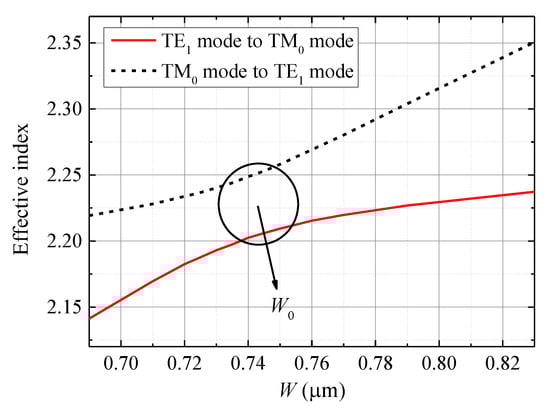 W0 = 0.75 μm of the mode hybrid region appears. To achieve mode conversion, the input width