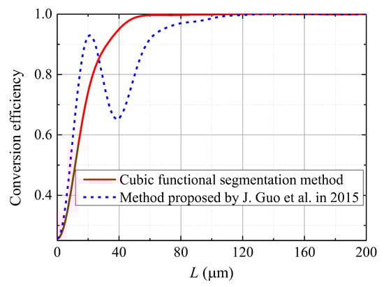 Figure 7, when 90% power conversion efficiency is required, the length required for the cubic functional segmentation design is 37 μm. When 99% power transfer efficiency is required, the cubic functional segmentation design requires a length of 59 μm. In