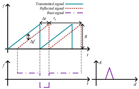 where and represent the amplitudes of transmitted and reflected signals, respectively, is the initial frequency, is the sweep frequency bandwidth, is the period of a sweep cycle, is the chirp rate, and is the time offset caused by the distance of the measured target.