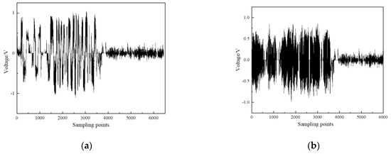 Output waveform of the detector at a distance of 20 m. (a) Transmission signal; (b) Detection signal.