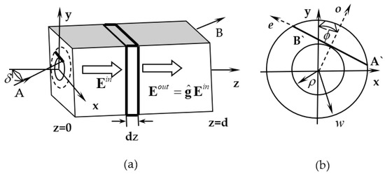 Scheme of beam propagation through a gyrotropic uniaxial crystal; longitudinal (a) A`B` and transverse (b) AB.