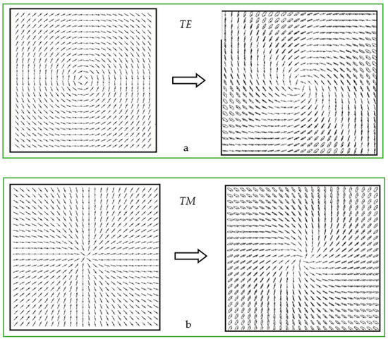 At the same time, it is interesting to consider the transformation of the beam mode fields depending on their own polarization, which they had in a simple anisotropic crystal. As is known [16,17], such beams are TE and TM modes [24] with the following polarization state: