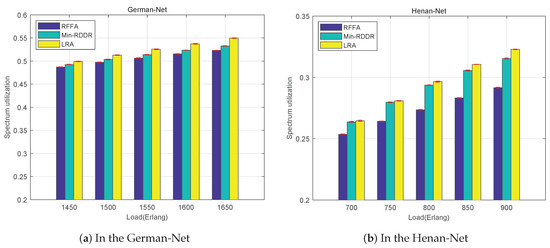 Comparison of spectrum utilization in (a) German-Net and (b) Henan-Net.