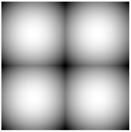 Due to the limited focal length and phase mask size used in the simulation, the phase mask of the Fresnel lens array is composed of 2 × 2 small phase masks of Fresnel lenses, whose expression Ψ is expressed in matrix form as shown in Equation (9).