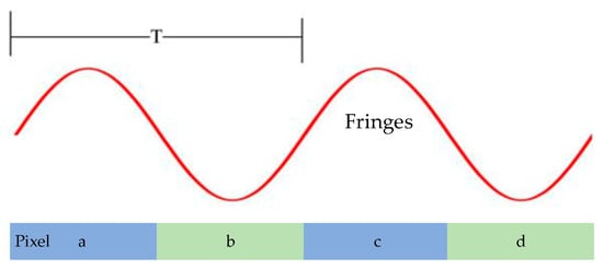 where are the attenuation and phase distribution, L is the distance from the sample to the detector, λ is the X-ray wavelength, and the weak scattering signals are neglected [23]. As shown in Figure 1, we adjust the magnification of the imaging system so that two adjacent pixels can measure the fringe’s intensity of one period.