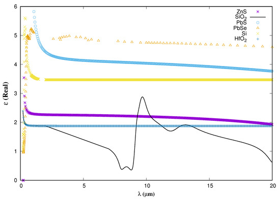 From Figure 4, it is easy to observe that the larger the value of the real part of the dielectric constant, the lower the emittance. Figure 3 and Figure 4 show that the material with the highest dielectric constant (PbSe) has the lowest emittance, without considering the absorption or the imaginary part of the said dielectric. Additionally, it is understood that the more absorption a material has, the lower its reflection or higher the emittance. By comparing the areas above the emittance curves for each material, Table 1 was generated to ensure that the largest area is indeed the PbSe curve.