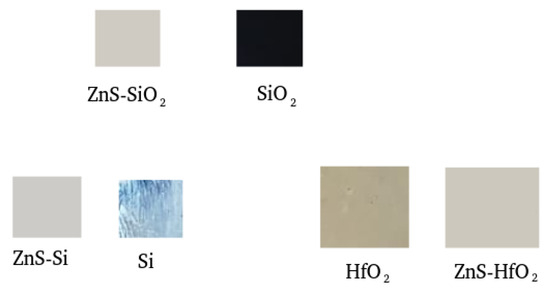 When comparing the table of area temperature versus the area emittance (Table 2), it is clear that the low emittance in the samples with zinc sulfide have low temperatures or a small area under the curve (theoretical). For example, in the area emittance table, the amount of Si-ZnS is 5.576 (a. u.), being the second highest emittance, and this agrees with being the coldest sample in the area temperature table (experimental). Moreover, it coincides with the finding that, with lower emittance, the temperature decreases in the samples with zinc sulfide on the top. Once again, from the area temperature table, it is shown that pure silicon is hotter (greater area above the curve) than hafnium dioxide. The materials are affected by their color and absorption. Therefore, they should be in that order when adding the zinc sulfide layer above. However, they are not, and this is because the greater the real part of the dielectric constant of the material, the greater the energy that the material reflects outward, and of course the lower the temperature on the surface.